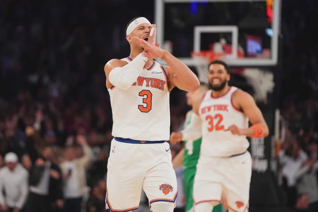 由于样本太小,效果还有待验证,但唐斯这一定位在常规赛与老鹰最后一次交手时确实发挥了巨大作用。那一场,尼克斯收比赛的方式很简单——唐斯弧顶手递手帮助布朗森接球并带走中锋,于是布朗森无敌。夹击布朗森则唐斯猪突篮下,老鹰进退两难。尼克斯其他三人会跑战术且个人威胁不小,老鹰不好全体龟篮下。球如果从布朗森、唐斯手里出给另外三人,那三人也有足够能力把回合完成——即使他们不做后续的传导球而选择个人硬打——这让老鹰很强的轮转速度不那么容易出效果。