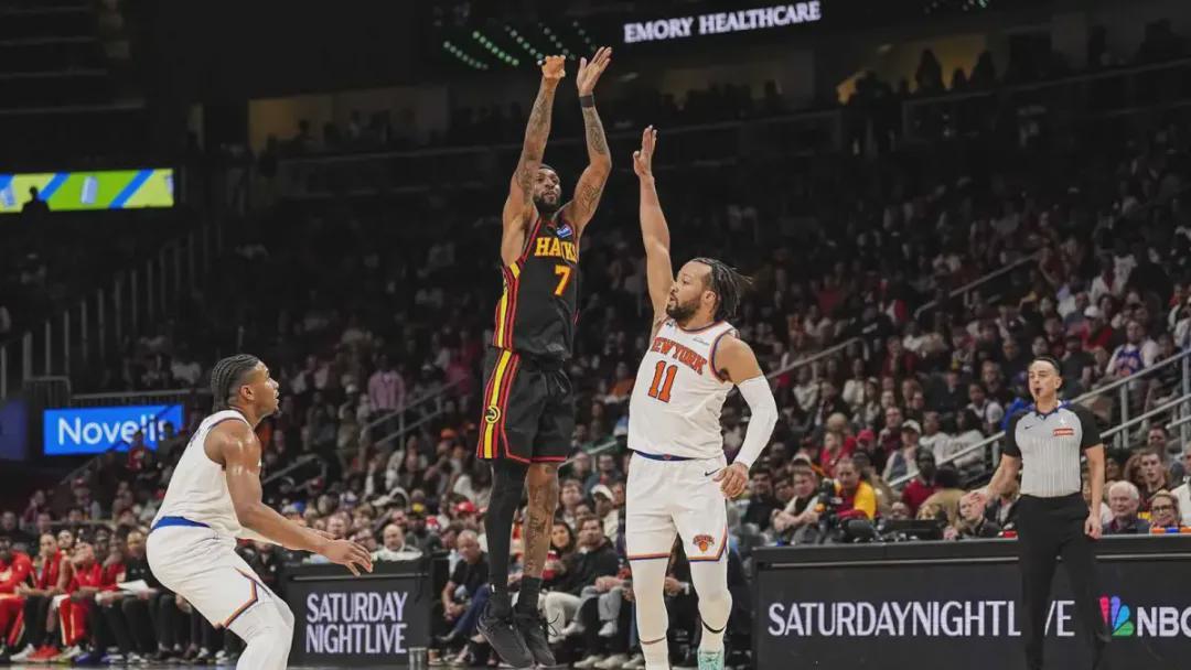 唐斯和布朗森是两队首发10人中2个防守相对弱的点,尼克斯必然会在这两人身上做必要的协防助力。戴森则是两队首发10人中进攻相对弱的点,他必然是尼克斯上协防主要的针对对象。如果戴森参与战术会非常考验与其他人的连线,不参与战术则纯拖空间(比对面哈特严重得多)。另外,奥孔古作为空间型中锋在季后赛场景下能回应到什么程度也存在疑问。如果这两人的火力都打不疼尼克斯,老鹰进攻最终呈现出什么水平,就要看球有多大程度在沃克、CJ和约翰逊手里终结。这不只是考验三人的个人能力,更要考验传切配合能让他们得到什么样的机会,以及球从他们手里传出后还能否回得来。